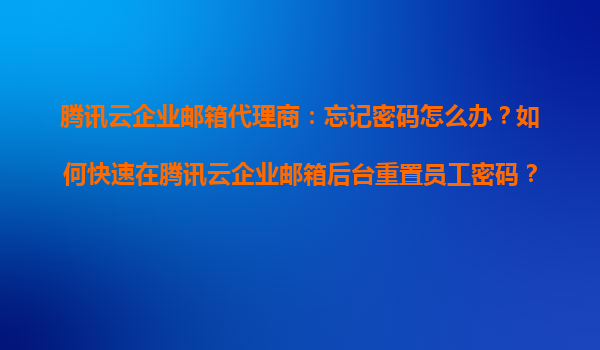 2025-11-02腾讯云企业邮箱代理商:忘记密码怎么办?如何快速在腾讯云企业邮箱后台重置员工密码? 一、腾讯云企业邮箱的核心优势 腾讯云企业邮箱作为国内领先的企业级邮箱服务,凭借以下优势成为众多企业...