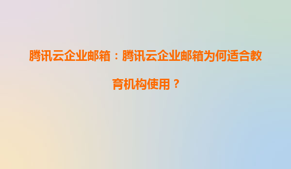 腾讯云企业邮箱:教育机构信息化建设的理想之选 教育机构的独特需求 在数字化教育浪潮中,教育机构面临着师生沟通、信息安全管理、跨部门协作等多重挑战。传统邮箱系统往往难以满足大规...