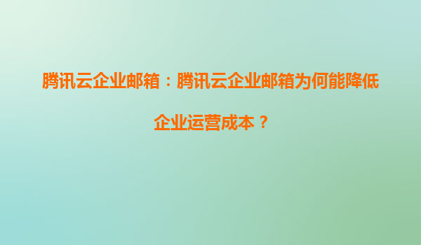 2025-06-13腾讯云企业邮箱如何降低企业运营成本?深度解析云服务与代理体系的双重优势 引言:数字化转型中的成本挑战 在竞争激烈的商业环境中,企业运营成本控制成为核心竞争力。传统邮箱系统面临...