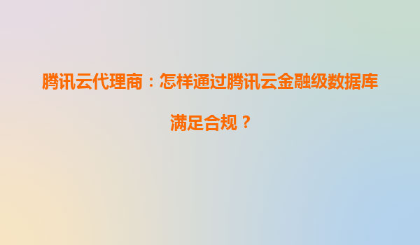2025-06-13腾讯云代理商:如何通过金融级数据库助力企业高效满足合规要求 在金融行业数字化转型浪潮中,数据安全与合规管理成为企业核心诉求。作为腾讯云代理商,我们深刻理解金融机构面临的监管挑战。腾...