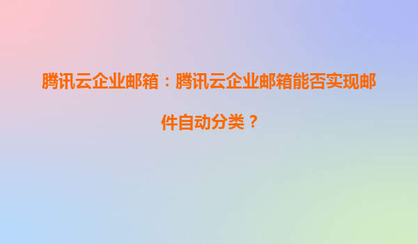 2025-06-13腾讯云企业邮箱:智能邮件自动分类,高效管理企业信息流 智能分类:企业邮件的自动化管家 腾讯云企业邮箱通过AI智能识别技术实现全自动邮件分类功能。系统根据发件人域名、关键词、邮件内容等多维度特征,自动...