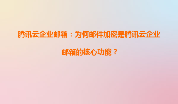 邮件加密:腾讯云企业邮箱的核心竞争力与安全保障 在数字化商业环境中,企业邮箱不仅是沟通工具,更是商业机密的重要载体。据IBM统计,2023年全球单次数据泄露平均成本达435万美元,而邮件正是...