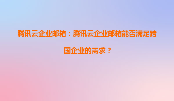 2025-06-13icleclass="tencent-email-article"> 腾讯云企业邮箱:跨国企业全球通信的理想解决方案 跨国企业的通信挑战 在全球化运营背景下,跨国企业面临着邮件系统时延高、数据合规风险、多语言协...