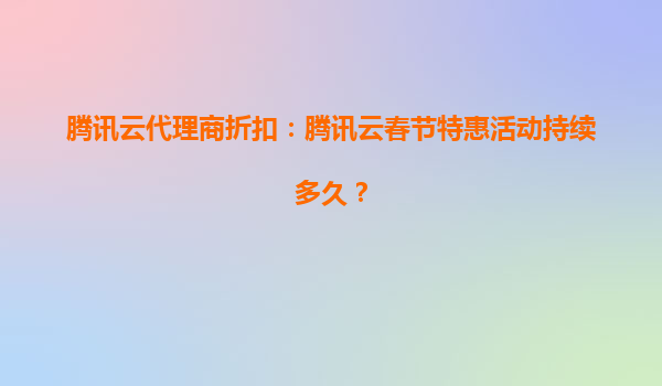2025-06-12#腾讯云春节特惠活动深度解析 下面我将为您呈现一篇关于腾讯云春节特惠活动及其优势的深度分析文章: 活动时间与优惠力度 腾讯云2024年春节特惠活动将于1月...