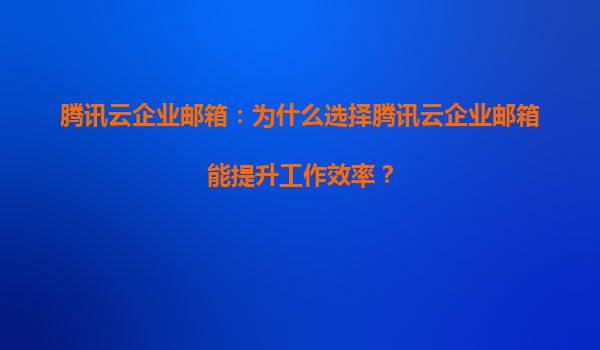 腾讯云企业邮箱:为何成为企业通信的首选? 在数字化办公时代,企业邮箱不仅是沟通工具,更是企业形象和效率的核心载体。腾讯云企业邮箱凭借其强大的技术基因和生态优势,已成为众多企业的首选...