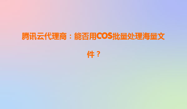 2025-06-11腾讯云代理商赋能:如何用COS高效批量处理海量文件? 在数据爆炸式增长的时代,企业常面临海量文件存储、分析和处理的挑战。腾讯云对象存储(COS)作为领先的云存储服务,结合腾讯云代理商的专业服务,为企业提...