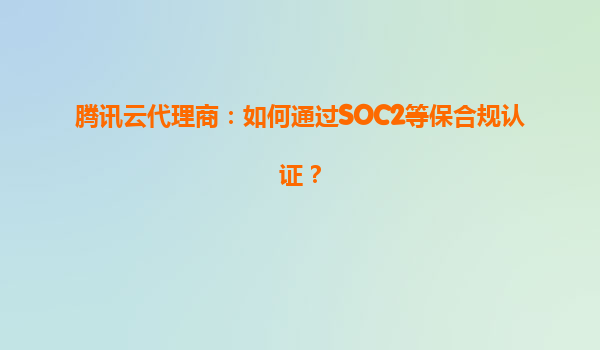 2025-06-11腾讯云代理商如何高效通过SOC2等保合规认证 合规认证:数字化时代的信任基石 在数据安全日益重要的今天,SOC2等保合规认证已成为企业拓展国际业务的关键通行证。作为腾讯云代理商,帮助客户通过SOC2认证不仅是...