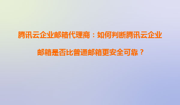 2025-11-01腾讯云企业邮箱代理商:如何判断腾讯云企业邮箱是否比普通邮箱更安全可靠? 引言 在企业数字化转型的背景下,邮箱不仅是沟通工具,更是承载商业机密的重要载体。腾讯云企业邮箱以其专业的企业级安全架...