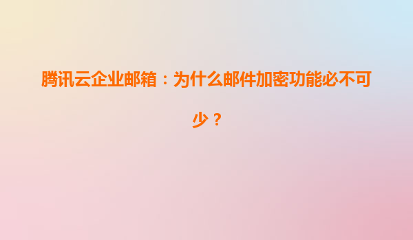 2025-06-10腾讯云企业邮箱:为什么邮件加密功能必不可少? 在数字化商业环境中,电子邮件承载着企业最核心的机密信息和业务数据。据IBM《2023年数据泄露成本报告》显示,企业邮件系统已成为黑客攻击的第...