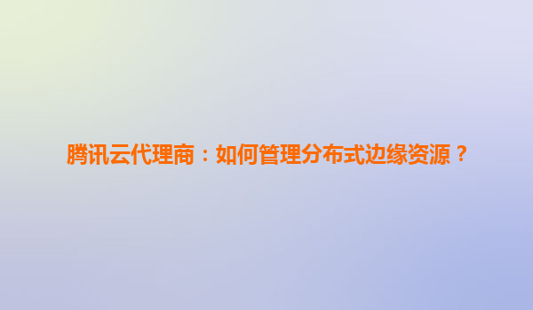 2025-06-10腾讯云代理商:如何高效管理分布式边缘资源 一、分布式边缘资源管理的核心挑战 随着物联网、5G和实时应用的爆发式增长,传统云计算中心化架构面临三大挑战:高延迟、带宽瓶颈和单点故障...