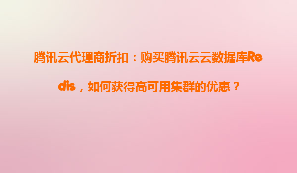 2025-11-01腾讯云代理商折扣:如何以最优价格购买高可用Redis集群 在当今数字化时代,数据库作为企业核心基础设施的重要组成部分,其稳定性与性能直接影响业务连续性。腾讯云作为国内领先的云服务提供商,其云数据库Redis产品...