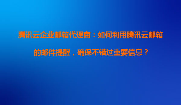2025-11-01腾讯云企业邮箱代理商:如何利用腾讯云邮箱的邮件提醒,确保不错过重要信息? 作为腾讯云企业邮箱代理商,帮助客户高效管理邮件并确保重要信息及时触达是核心服务之一。腾讯云邮箱提供强大的邮件提醒功能,结合...