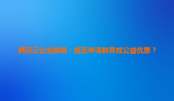 2025-06-07腾讯云企业邮箱:教育机构与公益组织专属优惠详解 一、教育/公益专属优惠政策 腾讯云企业邮箱为教育机构及公益组织提供专项扶持计划: 教育优惠:全日制学校凭办学资质可...