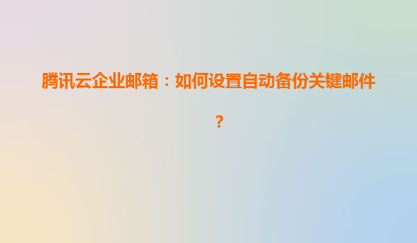2025-06-06腾讯云企业邮箱:如何高效设置关键邮件自动备份? 一、为什么必须设置邮件自动备份? 企业日常运营中,合同、财务数据、客户沟通等关键邮件一旦丢失可能造成法律风险、业务中断或数据资...