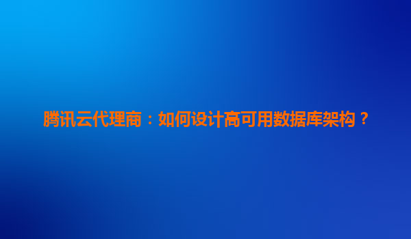 2025-06-06腾讯云代理商:如何设计高可用数据库架构 高可用数据库架构的重要性 在数字化时代,数据库已成为企业核心业务的命脉。一次数据库故障可能导致数百万损失,因此设计高可用架构至关重要。高可用性要求系...
