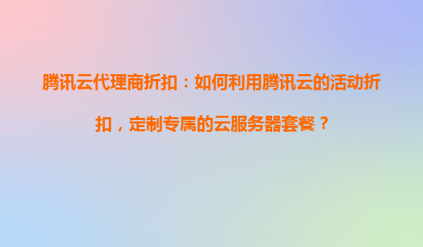 腾讯云代理商折扣:如何利用腾讯云的活动折扣,定制专属的云服务器套餐? 一、腾讯云的核心优势 在选择云服务商时,腾讯云因其技术实力、生态整合和灵活政策成为众多企业的首选。以下是其核心优势: 1....