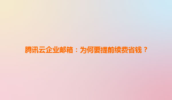 2025-06-03腾讯云企业邮箱:提前续费省钱的智慧之选 在数字化商业环境中,企业邮箱已成为组织沟通的核心枢纽。随着市场竞争加剧,成本控制能力直接影响企业竞争力。腾讯云企业邮箱推出的"提前续费享优惠"...