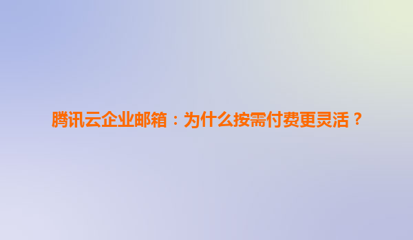 2025-06-03腾讯云企业邮箱:为什么按需付费更灵活? 在数字化办公时代,企业邮箱已成为商务沟通的基石。腾讯云企业邮箱凭借其强大的技术底蕴和安全能力,率先推出按需付费模式,彻底改变了传统邮箱的采购...