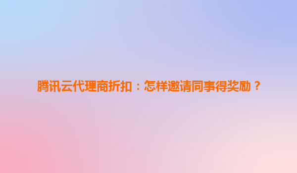 腾讯云代理商折扣:邀请同事得奖励,共享云计算红利 在数字化转型浪潮中,腾讯云凭借其强大的技术实力和丰富的行业解决方案,已成为数百万企业的首选云服务商。作为腾讯云代理商,您不仅能享受...