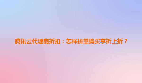 2025-06-02腾讯云代理商折扣:怎样拼单购买享折上折? 在云计算服务选择中,腾讯云凭借其强大技术实力和丰富生态资源成为众多企业的首选。通过代理商渠道购买腾讯云服务不仅能获得官方折扣,结合"拼单购...