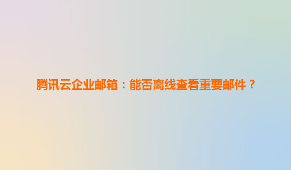 2025-06-01腾讯云企业邮箱:全方位解读离线查看重要邮件的解决方案 一、核心需求解析:为什么离线查看邮件如此重要? 在移动办公场景中,网络环境不稳定成为常态:航班途中、高铁穿越隧道、偏远地...