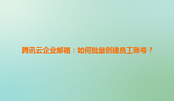 2025-06-01腾讯云企业邮箱:高效批量创建员工账号全攻略 为什么需要批量创建功能 当企业快速扩张或新项目启动时,行政人员常面临同时创建数十甚至数百个邮箱账号的需求。传统逐个...