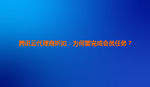 2025-06-01腾讯云代理商折扣:为何要完成会员任务? 会员任务:打开专属折扣的金钥匙 在腾讯云的代理商体系中,会员任务绝非简单的流程要求,而是获取深度折扣的核心通道。通过完成认证、培训、销售目标等阶梯式任务,代...