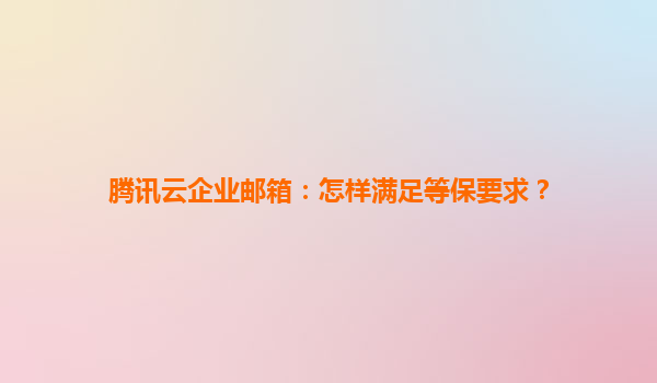 2025-06-01腾讯云企业邮箱如何全面满足等保要求?——云平台与代理商的协同优势 一、等保合规对企业邮箱的核心要求 根据《网络安全等级保护基本要求》,企业邮箱系统需满足: 数据...