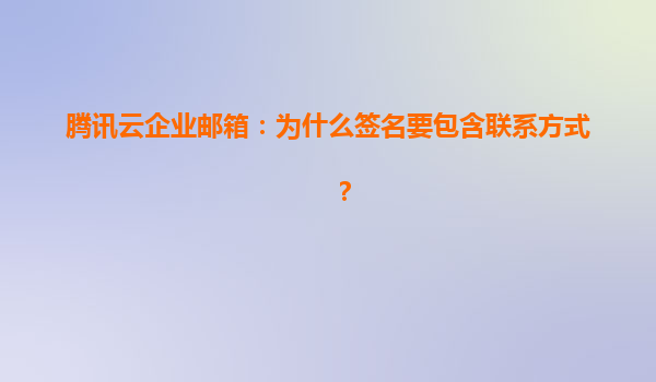 2025-05-31腾讯云企业邮箱:为什么签名必须包含联系方式? 专业形象的第一张名片 企业邮箱签名中的联系方式如同数字时代的商务名片。腾讯云企业邮箱支持自定义签名模板,员工发出的每封邮件都会自动带上统一...