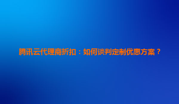 2025-05-31腾讯云代理商折扣:如何谈判定制优惠方案? 标题核心解读:谈判的关键要素 标题包含三个核心诉求:代理商身份(区别于普通客户)、折扣谈判(非标准定价)和定制方案(个性化需求)。这...