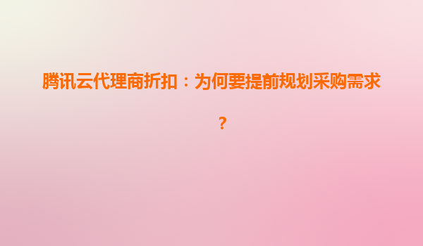 2025-05-31腾讯云代理商折扣:为何要提前规划采购需求? 在数字化转型的浪潮中,云计算已成为企业发展的核心引擎。作为国内领先的云服务提供商,腾讯云凭借其强大的技术实力和丰富的产品生态,为企业提供...