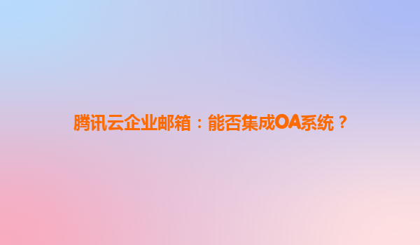 2025-05-31腾讯云企业邮箱:无缝集成OA系统,赋能企业高效协同 企业通信与流程管理的融合需求 在数字化办公时代,企业邮箱与OA系统的割裂已成为效率瓶颈。员工频繁切换系统处理邮件与审批流程,造成时间浪费与信息孤岛。...