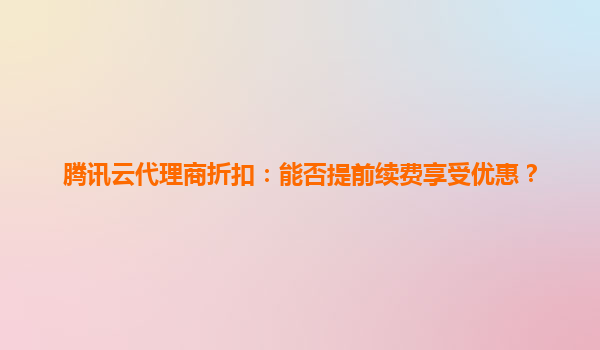 2025-05-30腾讯云代理商折扣:提前续费能否享受优惠?深度解析与优势盘点 一、提前续费享受代理商折扣的真相 这是许多企业用户最关心的问题:通过腾讯云代理商提前续费能否享受优惠?答案是肯定的!腾讯云代...