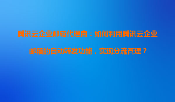 2025-10-31腾讯云企业邮箱代理商:如何利用腾讯云企业邮箱的自动转发功能,实现分流管理? 一、腾讯云企业邮箱与代理商的价值 腾讯云企业邮箱作为腾讯旗下的企业级邮件服务,凭借稳定、安全、高效的特性,成为众...