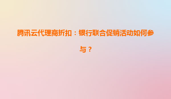 腾讯云代理商银行联合促销活动解析 一、活动背景与参与价值 腾讯云联合多家银行推出代理商专属折扣活动,旨在为企业提供更低成本的上云解决方案。通过代理商渠道,用户可叠加享受银行支付...