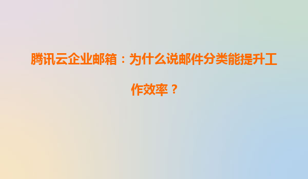 2025-05-27腾讯云企业邮箱:为什么说邮件分类能提升工作效率? 一、引言:现代职场中的邮件管理挑战 在数字化办公场景中,电子邮件作为企业内外沟通的核心工具,每天承载着大量信息流转。然而,海量邮件混杂、优先级...