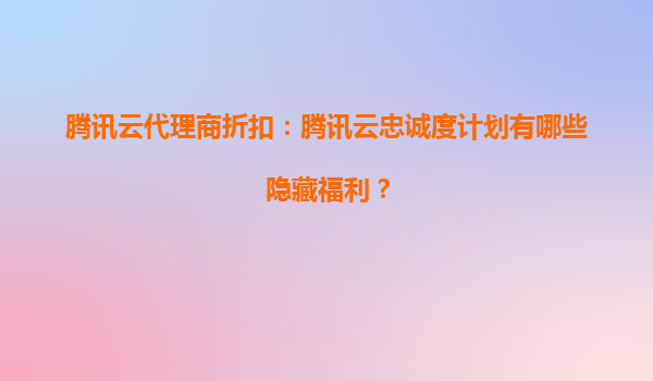 2025-05-27腾讯云代理商折扣:腾讯云忠诚度计划的隐藏福利解析 腾讯云作为国内领先的云服务提供商,不仅以技术实力著称,还通过代理商体系为用户提供更灵活的服务。而腾讯云忠诚度计划作为其核心客户运营策略...
