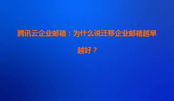 2025-05-26腾讯云企业邮箱:为什么说迁移企业邮箱越早越好? 一、企业邮箱迁移的紧迫性 在数字化转型加速的今天,企业邮箱作为内外沟通的核心工具,直接影响团队协作效率和数据安全。许多企业仍在使用传统邮箱服...