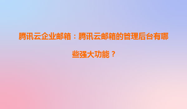 2025-05-26腾讯云企业邮箱:智能化管理助力企业高效协作 在数字化办公场景中,企业邮箱不仅是沟通工具,更是企业信息安全与组织管理的重要载体。腾讯云企业邮箱凭借其强大的管理后台功能,为企业用户提供全流程数字化...