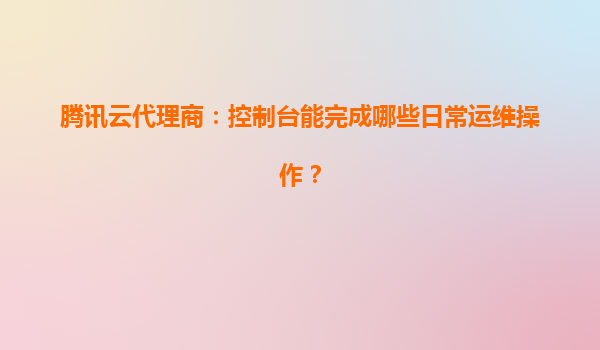 2025-05-25腾讯云代理商控制台的日常运维操作指南 一站式云服务器管理 腾讯云控制台为代理商提供了完整的云服务器全生命周期管理能力,用户可通过可视化界面快速完成实例创建、配置调整、系统重启等操作。通...