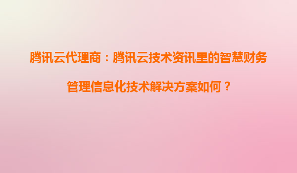 腾讯云代理商:智慧财务管理信息化技术解决方案解析 一、智慧财务管理的行业需求与挑战 在数字化转型浪潮下,企业财务管理面临数据孤岛、流程低效、风控滞后等痛点。传统财务系统难以满足实时分析、智能预...