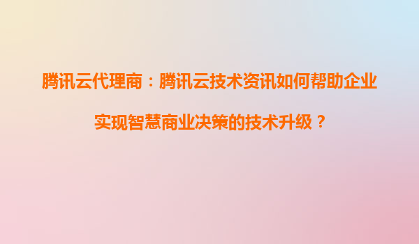 2025-05-24腾讯云代理商:腾讯云技术资讯如何帮助企业实现智慧商业决策的技术升级? 一、腾讯云代理商在智慧商业决策中的核心价值 腾讯云代理商作为企业与腾讯云技术资源之间的桥梁,通过整合云计算、大数据、人...