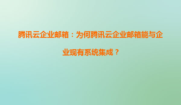 2025-05-24腾讯云企业邮箱:为何能与企业现有系统无缝集成? 在数字化转型浪潮下,企业邮箱已从基础通信工具升级为协同办公的核心枢纽。腾讯云企业邮箱凭借其开放性和技术生态优势,成为众多企业实现系统集成...