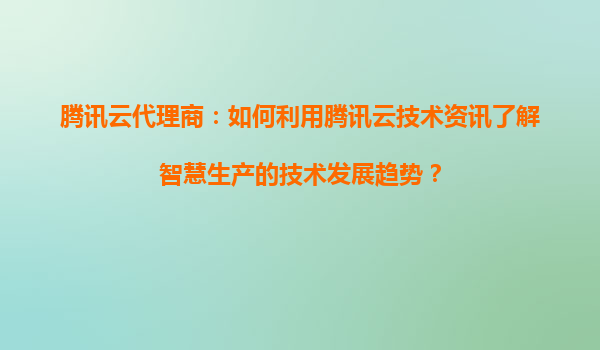 2025-05-24腾讯云代理商:如何利用腾讯云技术资讯了解智慧生产的技术发展趋势? 一、智慧生产与腾讯云技术资讯的重要性 在数字化转型的浪潮中,智慧生产已成为制造业、能源、农业等领域的核心发展方向。作为...