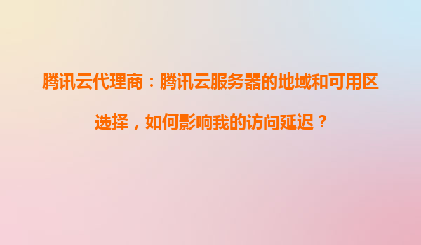 腾讯云代理商:腾讯云服务器的地域和可用区选择如何影响访问延迟? 在云计算时代,服务器的性能和访问速度直接影响用户体验和业务效率。腾讯云作为国内领先的云服务提供商,其服务器地域和可用区的选择对访...