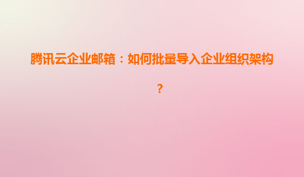 2025-05-21腾讯云企业邮箱:如何高效批量导入企业组织架构? 一、腾讯云企业邮箱的核心优势解析 在数字化转型加速的今天,腾讯云企业邮箱凭借以下核心优势成为企业首选: 军工级安全防护:采用量子...