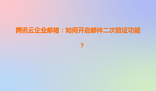 2025-05-21腾讯云企业邮箱:如何开启邮件二次验证功能? 一、为什么需要邮件二次验证? 在数字化办公场景中,企业邮箱承载着大量敏感信息与业务数据。启用二次验证(2FA)可大幅提升账户安全性,防止因密码...