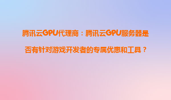 2025-10-29腾讯云GPU代理商:腾讯云GPU服务器是否有针对游戏开发者的专属优惠和工具? 一、腾讯云GPU服务器的核心优势 腾讯云作为国内领先的云计算服务商,其GPU服务器凭借高性能计算能力...