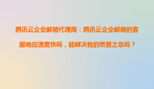 腾讯云企业邮箱代理服务:高效客服与快速响应 作为国内领先的云计算服务商,腾讯云企业邮箱凭借其强大的技术支撑和专业的服务体系,已成为众多企业的首选。本文将详细分析腾讯云企业邮箱的客服响应速度及解决问题的...