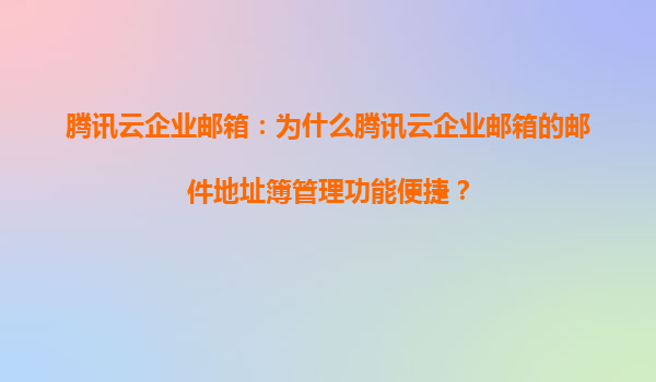 2025-05-20腾讯云企业邮箱:邮件地址簿管理功能为何成为企业效率利器? 在数字化办公场景中,企业邮箱的地址簿管理能力直接影响团队协作效率。腾讯云企业邮箱通过技术创新与生态协作,打造出行业领先的智能地...